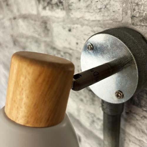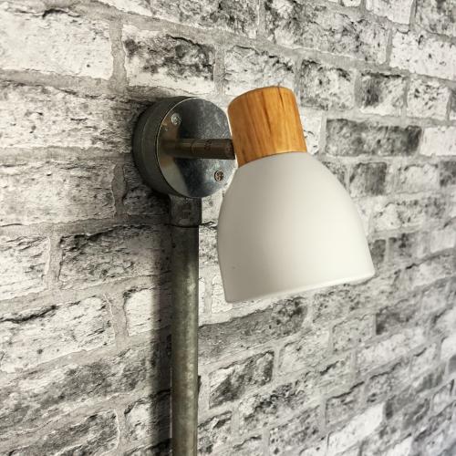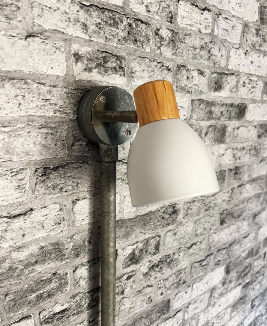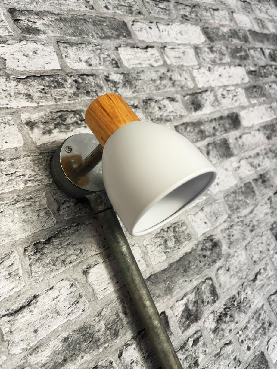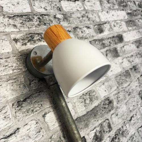Industrial coastal GU10 conduit spotlight fully adjustable Ideal as a reading light. Takes 1 x GU10 LED lamp. Gorgeous metal cowl shaped shade complimented with a Scandi wooden back. This is a coastal design coupled with an industrial vibe. Conduit lighting is very urban and works well as a feature.