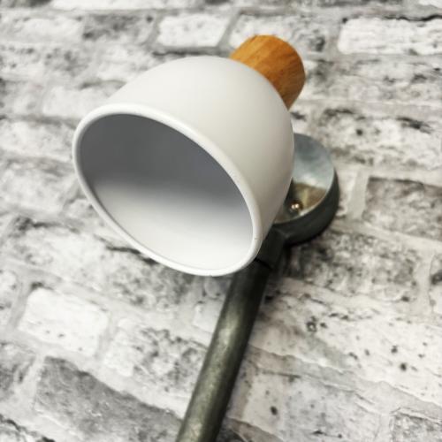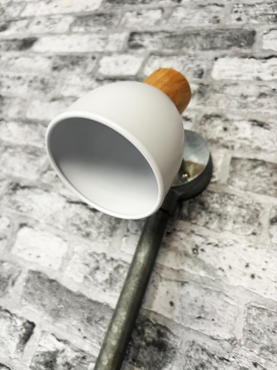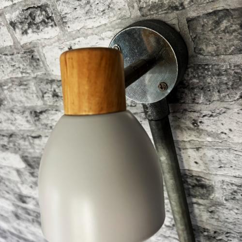Industrial coastal GU10 conduit spotlight fully adjustable Ideal as a reading light. Takes 1 x GU10 LED lamp. Gorgeous metal cowl shaped shade complimented with a Scandi wooden back. This is a coastal design coupled with an industrial vibe.