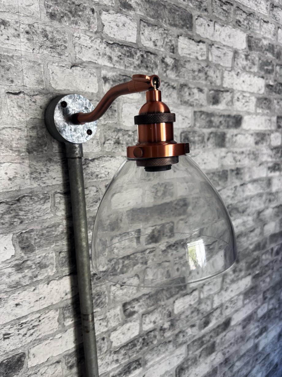 Each conduit light takes an E14 small screw in lamp. Perfect as a bedside reading wall light or over a picture/arwork. Made by hand in my Bristol workshop. Limited stocks.