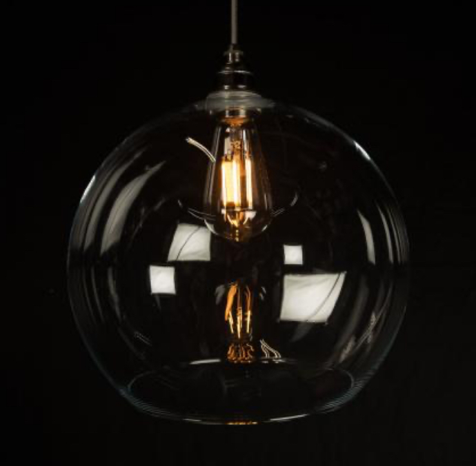 A large cluster drop of pendants designed for a high ceiling. Made using my handblown 300mm glass ball shades. A simple and timeless look. Each pendant light comes with 4metres of black fabric cable and a dark aged bronze lampholder. The cable can be cut shorted during installation. It comes with a white 300mm ceiling rose. The colour of this can be changed, same as the cable and the holders. Please contact us to discuss any alterations. This pendant set is also supplied with Gen3 LED squirrel cage lamps that are fully dimmable.