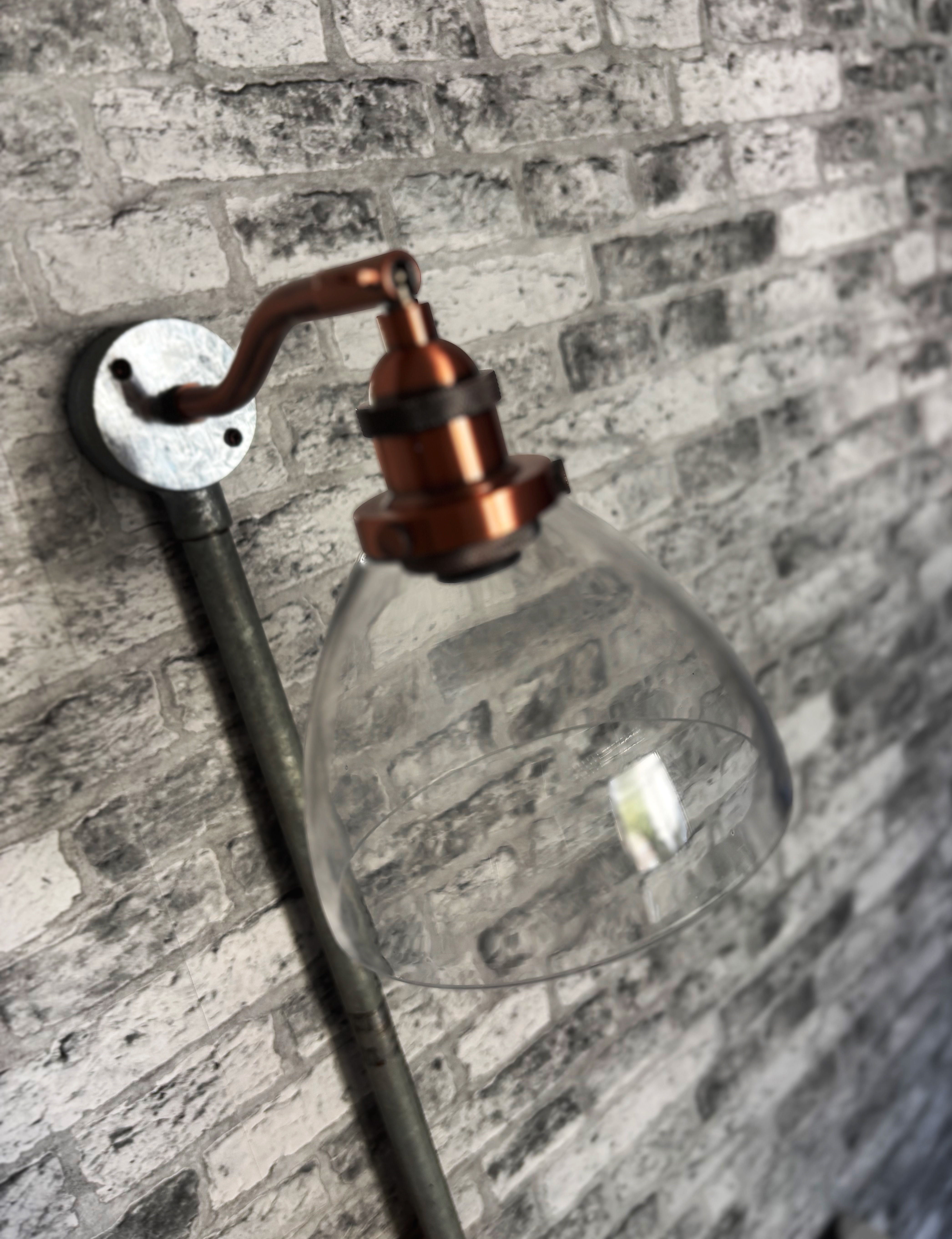 Each conduit light takes an E14 small screw in lamp. Perfect as a bedside reading wall light or over a picture/arwork. Made by hand in my Bristol workshop. Limited stocks.